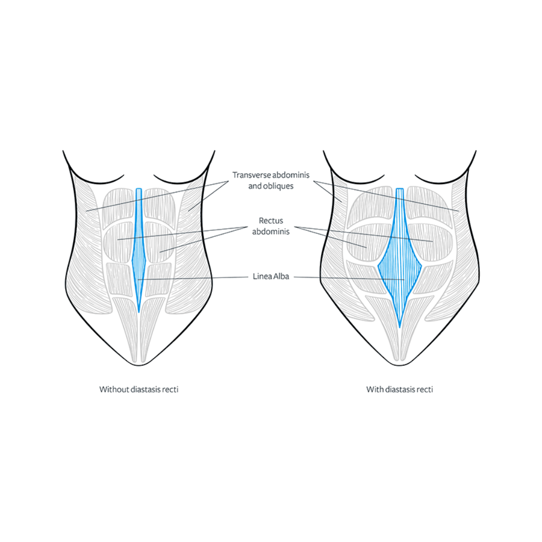 خلال فترة الحمل، قد تلاحظين انتفاخًا أو انحناءً مخروطيًا في البطن عند محاولة الجلوس أو الانحناء للخلف. بعد الولادة، قد تلاحظين هذا الانتفاخ، أو قد تشعرين بأنكِ لا تزالين تبدين حاملًا رغم فقدانكِ للوزن. قد يكون هذا الأمر مزعجًا ومحبطًا للغاية، خاصةً إذا كنتِ تتبعين نظامًا غذائيًا صحيًا وتحاولين ممارسة الرياضة. عادةً ما يزول هذا الانتفاخ تلقائيًا خلال الأسابيع التسعة الأولى بعد الولادة. ومع ذلك، في حوالي ثلث النساء، لا يزول الانتفاخ تلقائيًا، لذا يُنصح باستشارة أخصائية علاج طبيعي لصحة المرأة.