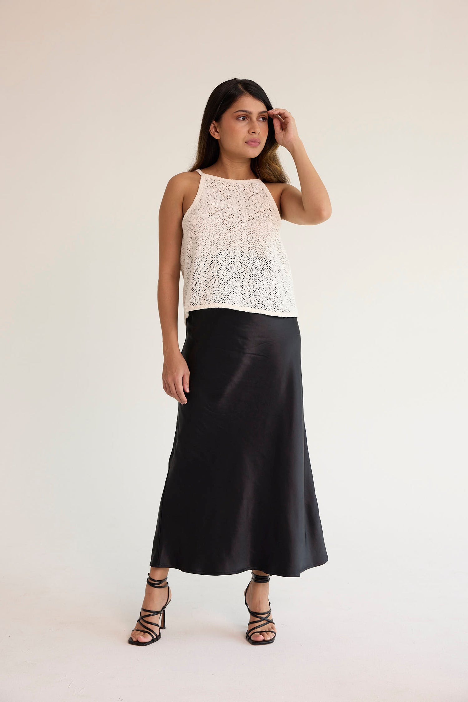 إلهام الأناقة: أناقة يومية مع تنورة الساتان السوداء من مجموعة CARI