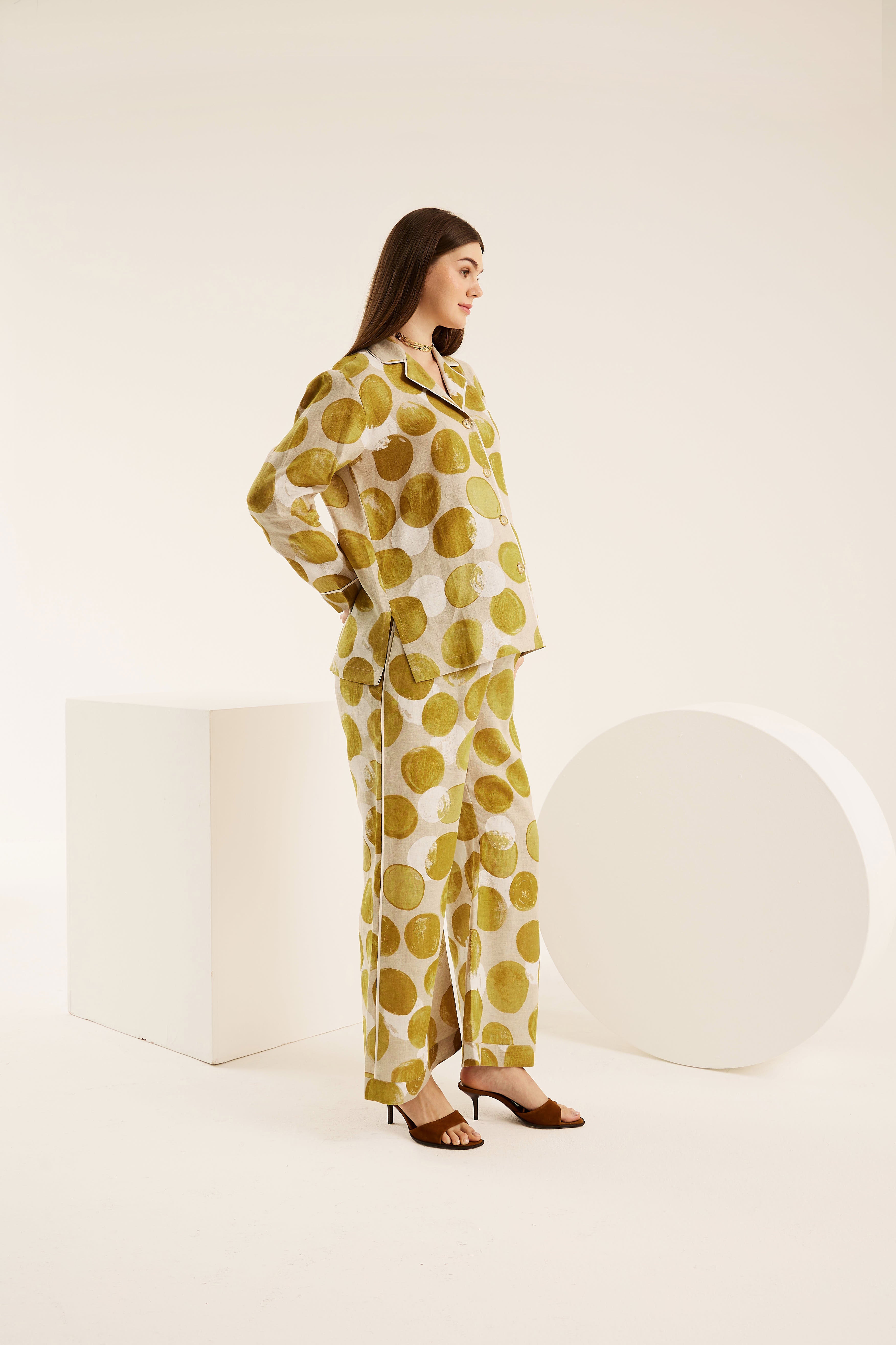 The Amal Pants by KAGE, in their bold Mustard and Beige print, bring a distinctive touch to your wardrobe. Crafted from 100% linen, the blend of comfort, a classic straight cut, and subtle piping details elevates this timeless silhouette into an effortlessly refined staple.