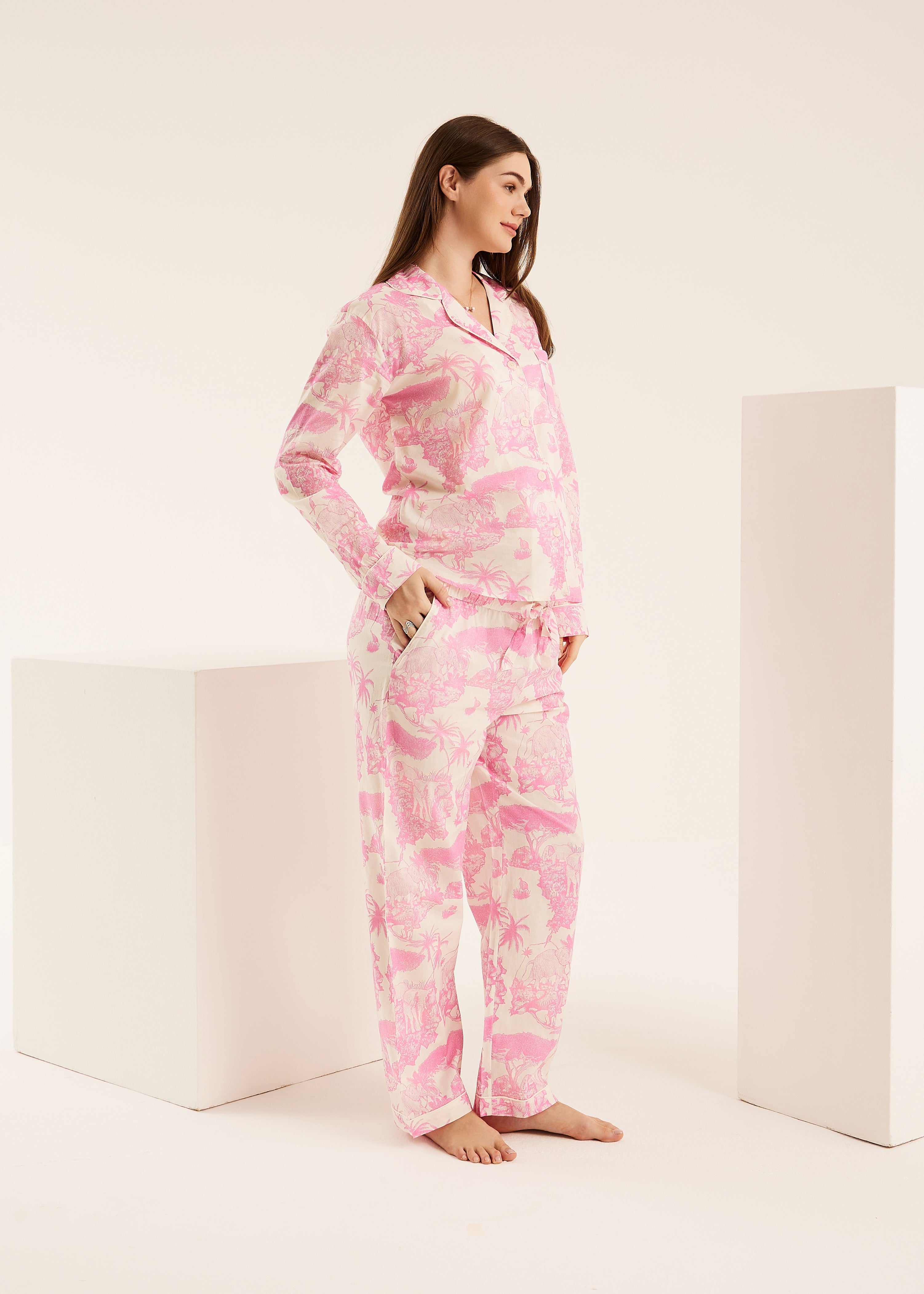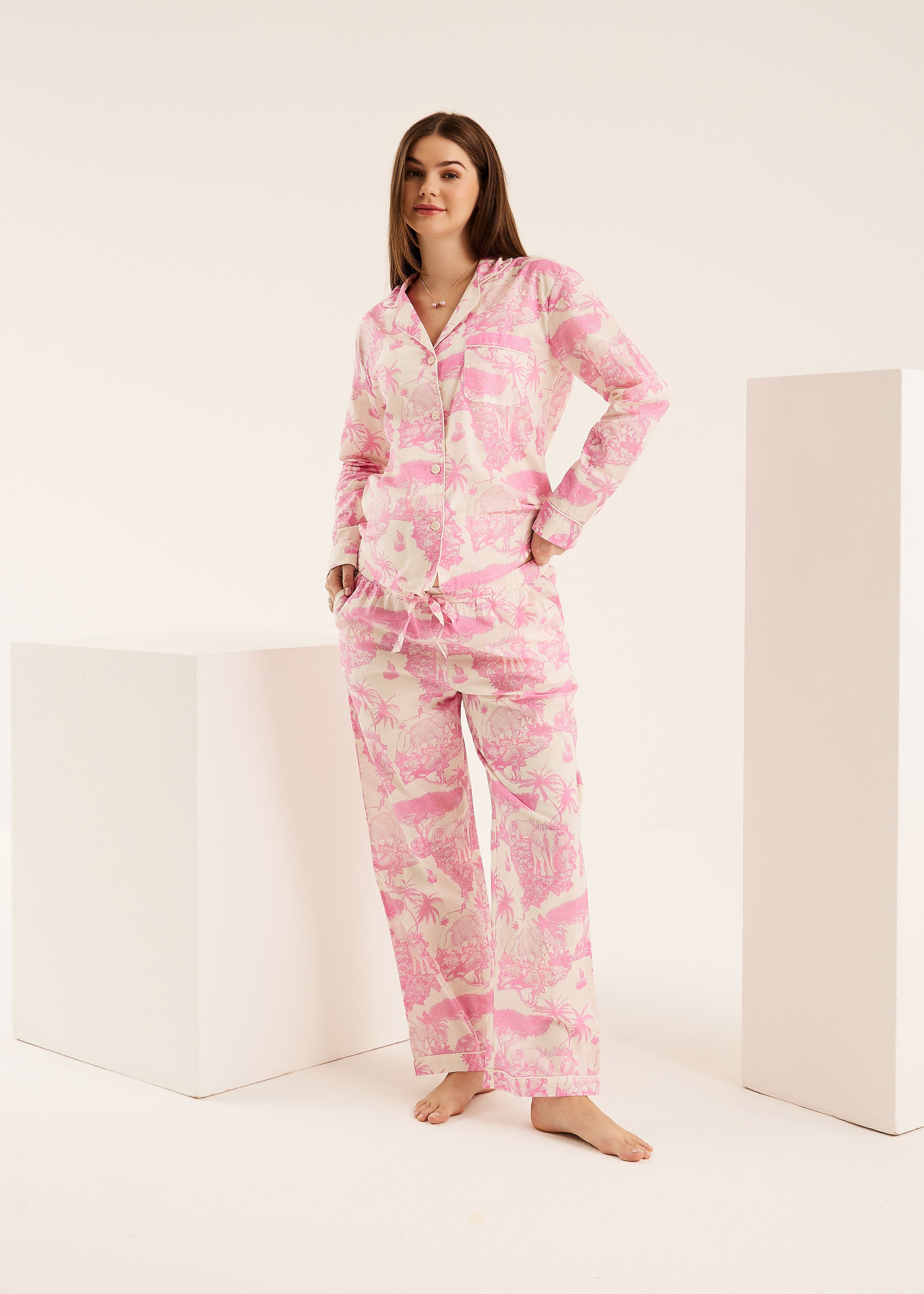 One of our bestselling prints, the pink Loxodonta by Desmond & Dempsey, returns in this long set, bringing effortless chic to your lounging. Crafted from ultra-light, breathable cotton, it offers comfort that moves and grows with you.