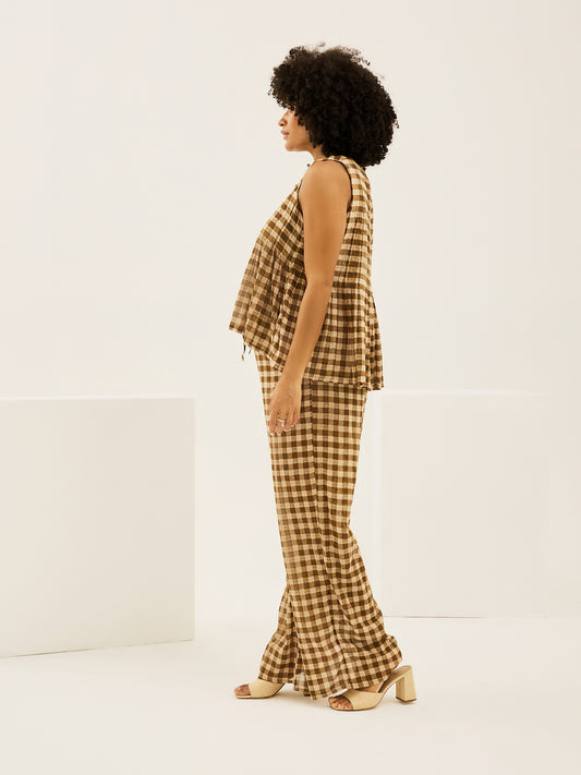 Gingham 50's Voile Brown Cami Lounge Set