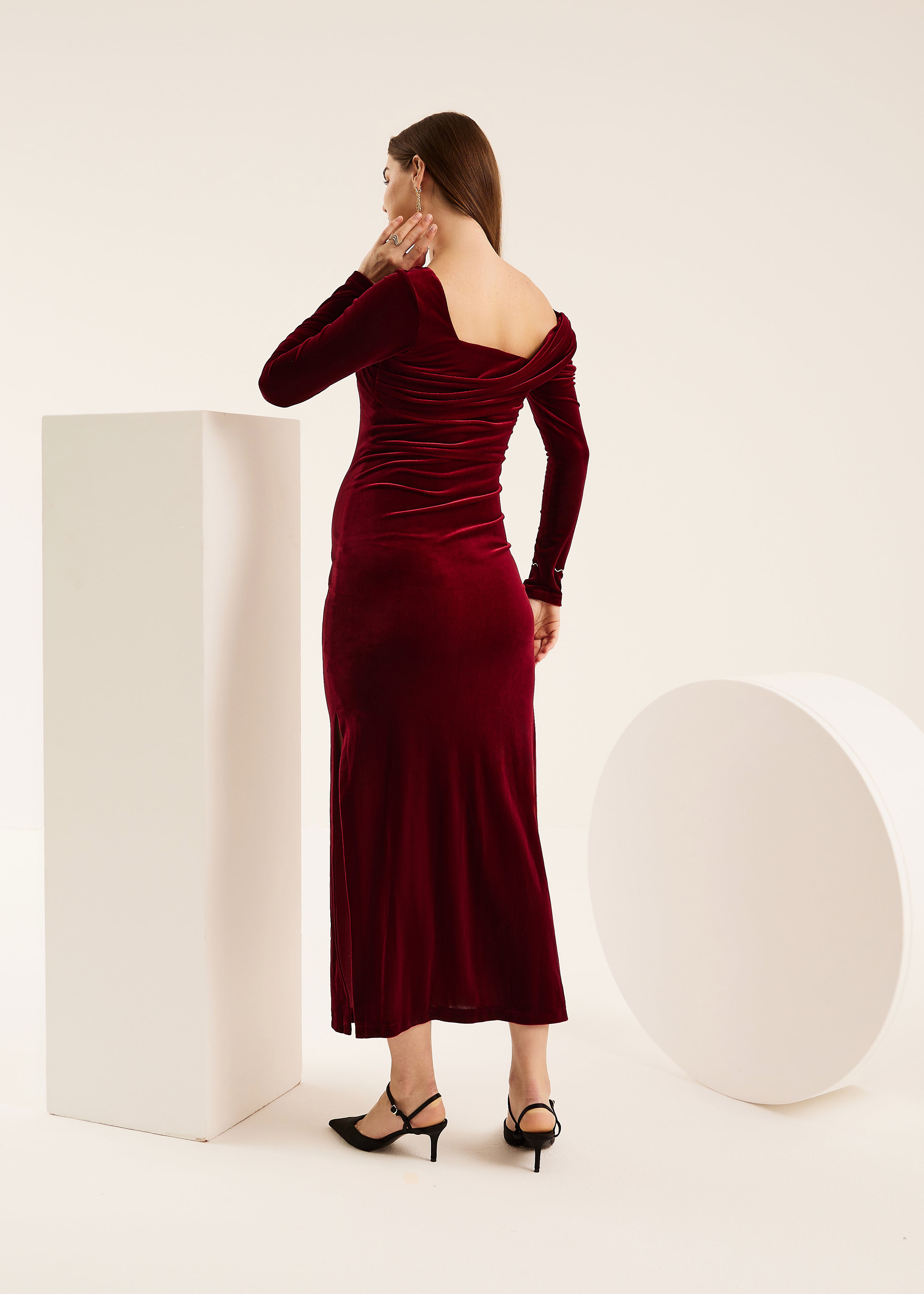 The one-shoulder Femme Fatale Dress by Undress Code, in a rich burgundy velvet, beautifully combines elegant drapery with refined sophistication. A timeless staple for the party season, this piece is one you’ll find yourself reaching for time and time again.